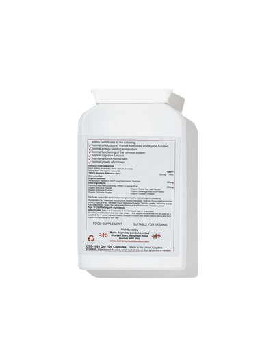 This amazing organic food supplement offers a unique blend of iodine-rich, food-approved seaweeds. Iodine contributes to: normal cognitive function, normal energy-yielding metabolism, normal functioning of the nervous system, the maintenance of normal skin, the normal production of thyroid hormones and normal thyroid function. The iodine also has the added benefit of being sourced from seaweed that naturally contains all the other minerals and micronutrients needed for its proper transport and metabolism (including selenium, tyrosine, zinc, copper, vitamins A, B2, B3, B6 and C). As most iodine is from dairy and meat, this is ideal in vegan, vegetarian, allergy and intolerance diets.